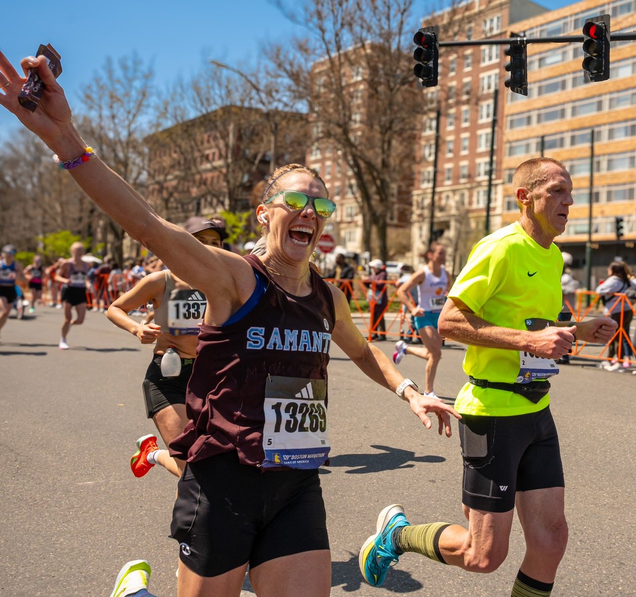 Come join us for class at Brookline studio and stay after to cheer on the runners.